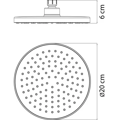 Genießen Sie Ihren Wellness-Moment unter der runden Kopfbrause Viba. Dank 20 cm Durchmesser erleben Sie eine herrliche Regendusche. Für eine leichte Reinigung verfügt die Brause über Anti-Kalk-Noppen.