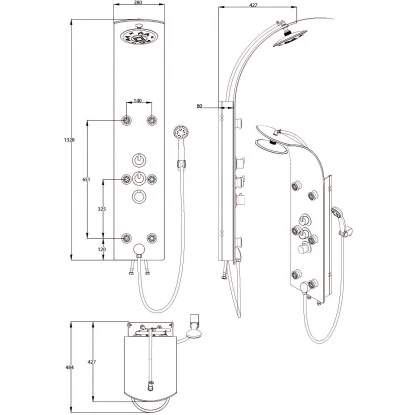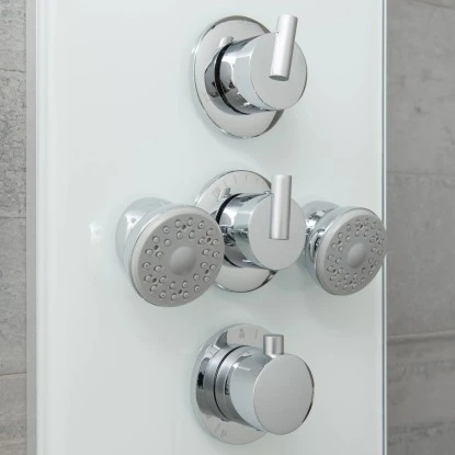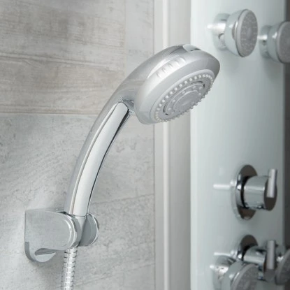 Mittels Umsteller kann von Kopf- auf Handbrause oder auf die seitlichen Massagedüsen gewechselt werden.