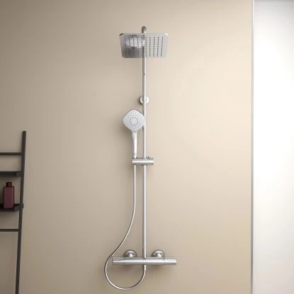 Das Ideal Standard Duschsystem mit Brausethermostat Ceratherm T100 bewährt sich mit ergonomischen Design und einem unvergleichlichen Maß an Haltbarkeit, Sicherheit und Leistung. Hier fehlt Ihnen nichts mehr zu einem perfekten Duschvergnügen.